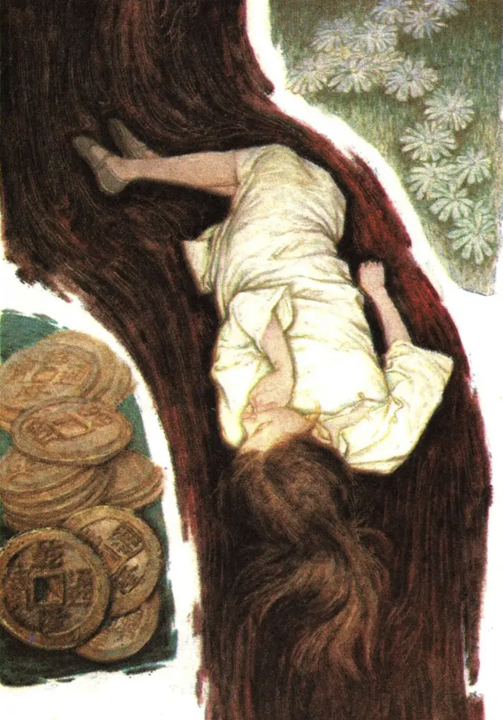 在母亲头上唯一的簪子都被典当后,山穷水尽的母亲靠帮人洗衣服养活女儿,每次洗完都被臭袜子薰到吃不下饭,本来白净的手上起了鱼鳞一样的老皮。即便这样的工作,也不是常有,看着饥饿中的女儿,年轻美丽的母亲决定改嫁。