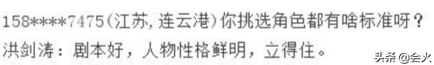 2013年,洪剑涛在接受采访,回答其中一位网友的提问时是这样说的,只要剧本好,人物性格鲜明,就挑选该角色。