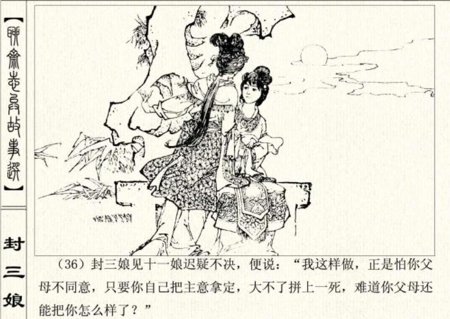 封三娘去跟孟安仁说了,孟安仁自然高兴,托人来说媒,没想到被范母拒绝了。范父得知女儿竟喜欢一个穷秀才,很是生气。正好有一个官绅来提亲,就准备强行把十一娘嫁了。没想到十一娘心意已决,在婚礼前上吊自尽了。