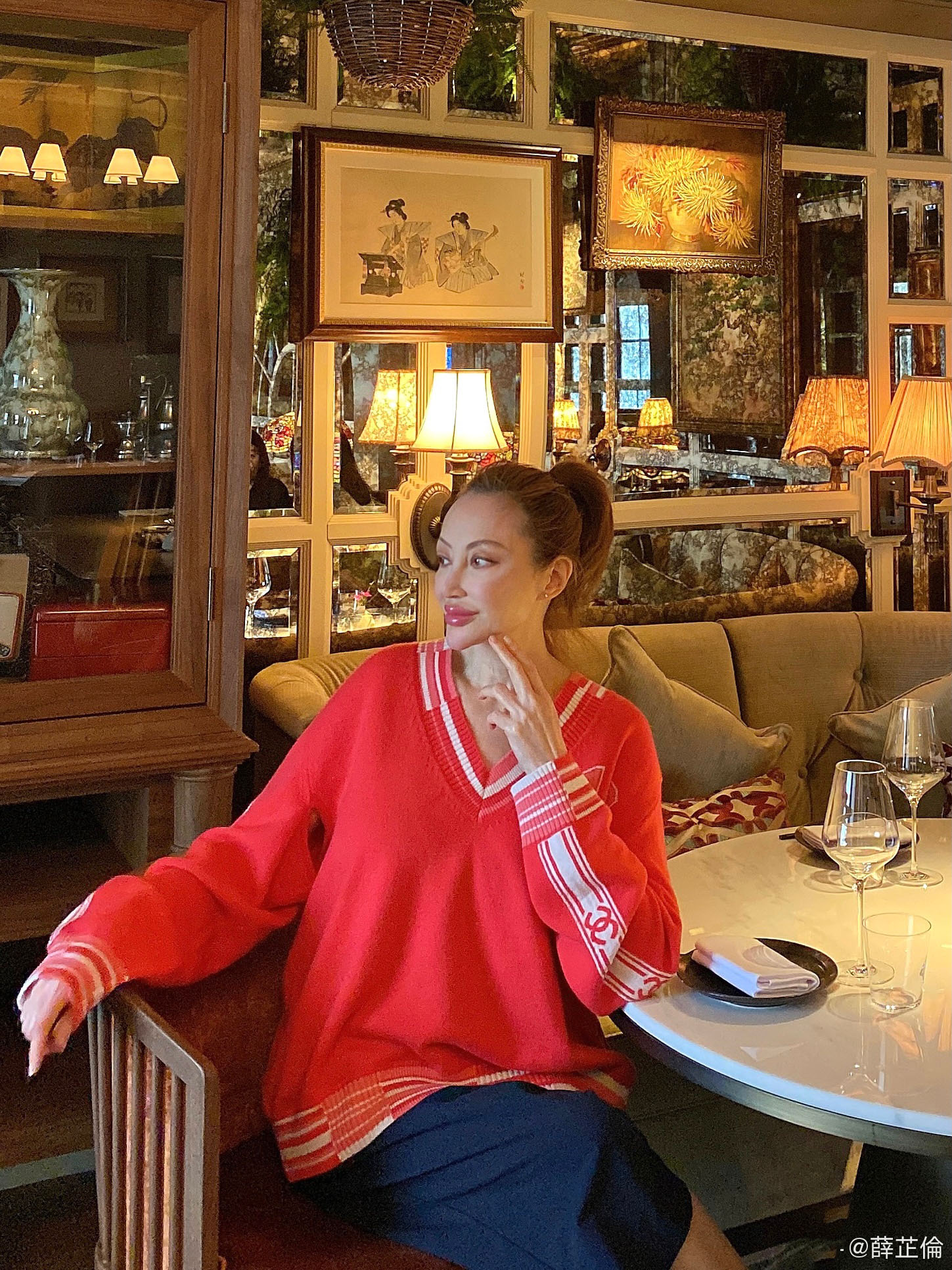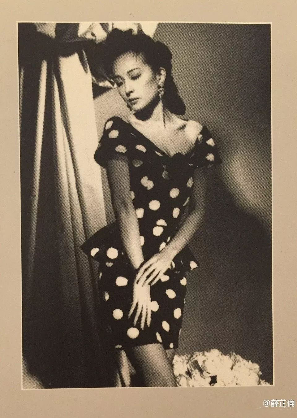 照片里的薛芷伦脸部线条柔美流畅,搭上波点裙,百分百的复古大小姐风,面貌与如今的她更是相距十万八千里。