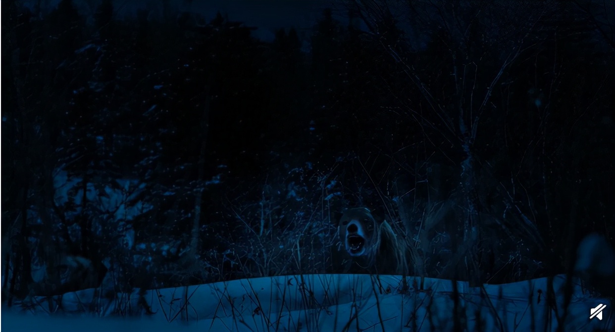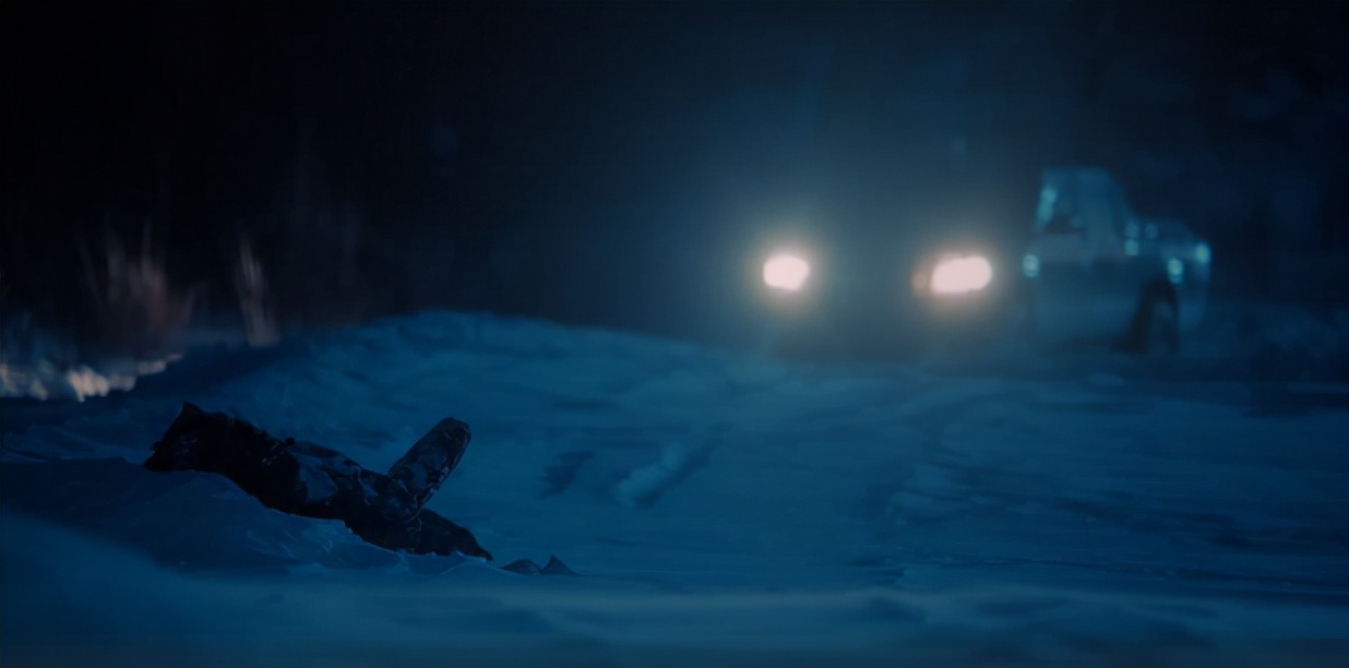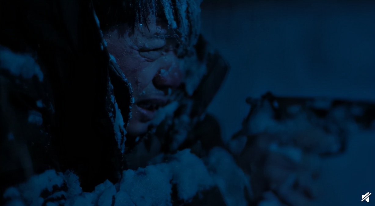 暗夜,冷山,雪林,冻僵的双手,通红的脸,一个持枪的硬汉,在雪地里已经冻得快要失去知觉,隔着屏幕都能感觉到它他的冷。