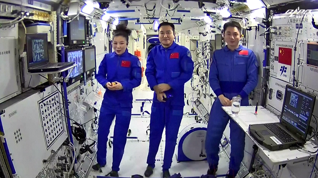 在长达40分钟的直播课中,她在太空环境里讲述了处于失重状态下的物体运动、液体表面张力等物理现象