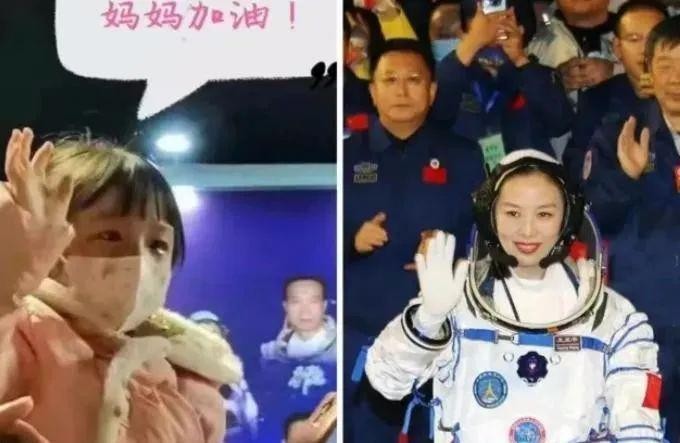 在王亚平出行前,女儿也在欢送队伍中