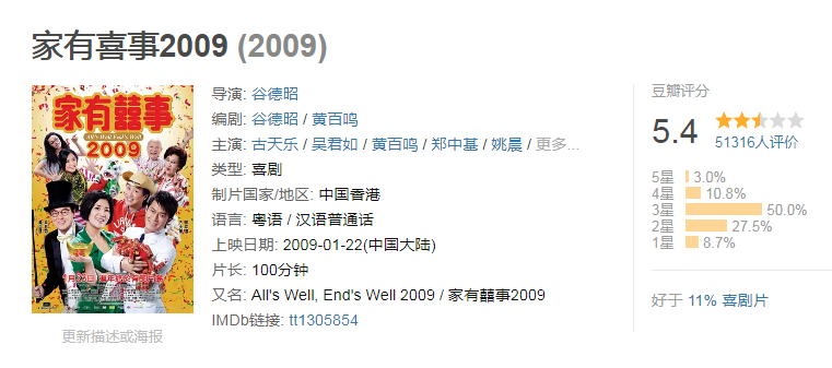其中还有一部在2009年上映的电影有些特殊,这就是《家有喜事2009》,特殊在哪儿呢: