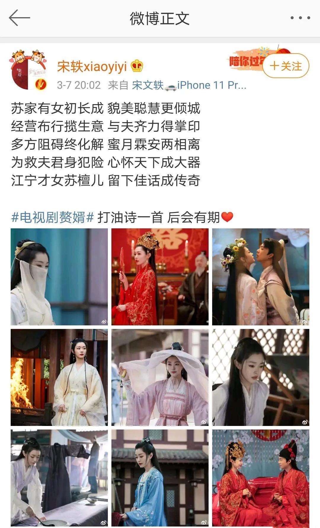 《赘婿》收官,宋轶用打油诗告别了“苏檀儿”这个角色,不过就像她说的: