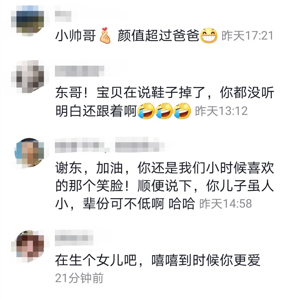 而看到此视频网友纷纷评论,有人夸赞了孩子的颜值,称小帅哥的颜值超过谢东。也有人回应儿子虽小,辈分可不低,并且让谢东加油。还有热心善良的网友,直言称再生个女儿吧,到时候会更爱!