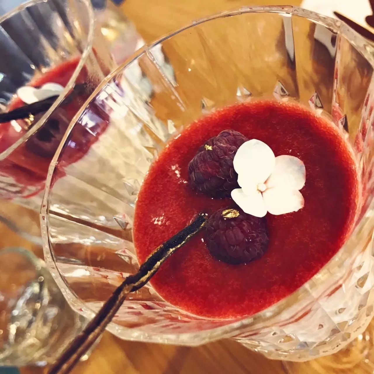 强嫂自己对甜品的要求很高,推荐给我的这款香草奶冻,则用优质完整的香草荚制成的,甜品上层点缀的是新鲜的覆盆子与覆盆子泥,香气柔和,入口甜美。