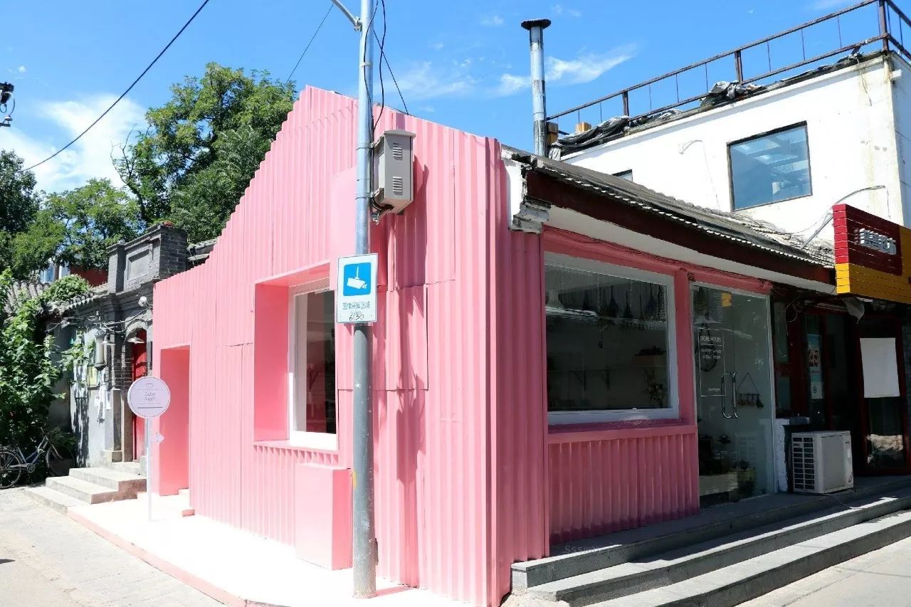 离着老远就发现了它的存在,没办法,粉色的小屋子矗立在胡同清一色的灰墙中,想低调也没办法嘛。