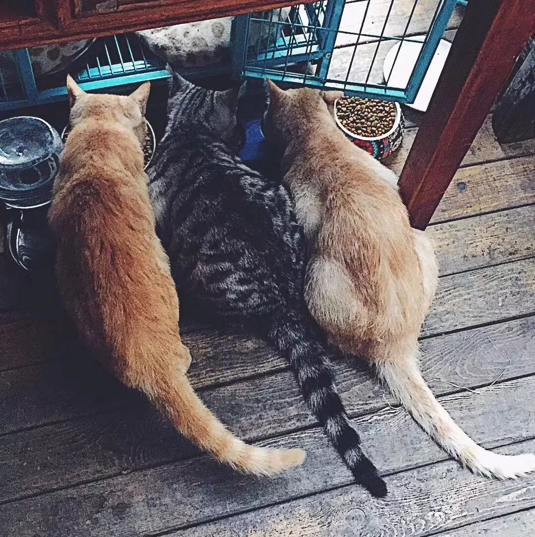 就在洋洋调酒的时候,带着伊丽莎白圈的二帅还时不时的跳上吧台“视察工作”。洋洋说,“没客人的时候,4只猫还会排排坐在门口。” 简直像是招揽生意的招财猫诶!