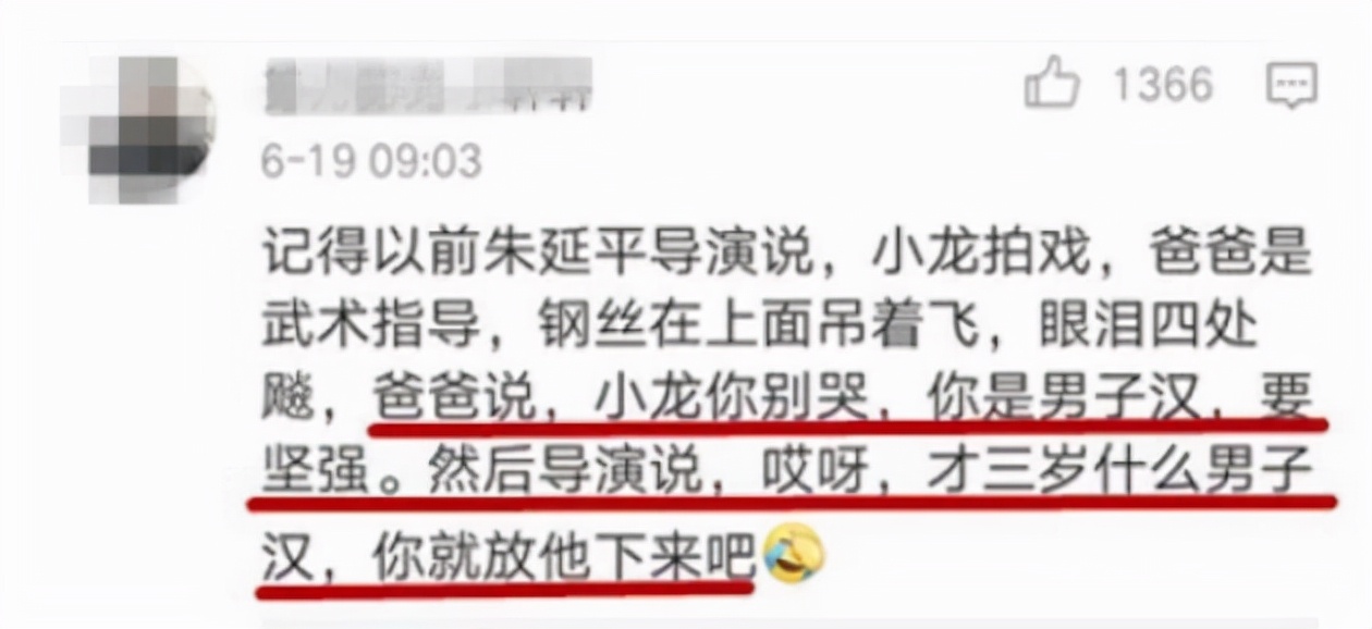 还有一次,释小龙爷爷来剧组看望他,看到释小龙在拍戏的样子心疼哭了。