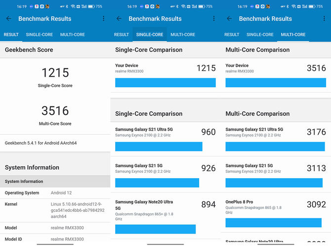测试可以看到,安兔兔测试的分数已经超过了10万分,性能相当强悍,geekbench5的单核成绩是1215分,多核的分数是3516分,cpu的理论性能已经是最顶级,3dmark的测试得分8019分,这样成绩对于主流的手机游戏都可以畅顺运行。