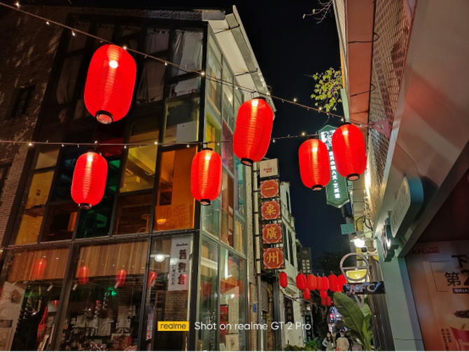 imx766拥有成熟的调教,真我gt2 pro支持5000万像素直出和像素四合一模式,并支持全像素全向对焦。通过样张可以看到,照片细节以及色彩表现都很出色,高饱和度的画面很能吸引眼球。全新?研prolight超感光技术支持下的超级夜景,可以有效控制噪点,同时增强了画面的明暗表现,带来更好的细节,也让画面更为通透,更重要的是广角镜头也支持夜景模式。