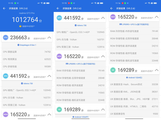 真我gt2 pro也可以根据使用场景进行刷新频率的实时、快速、准确适配,比如在全场景静止状态下实现低至1hz的刷新频率,当再次滑动的时候,频率刷新频率可以瞬间提升到120hz。