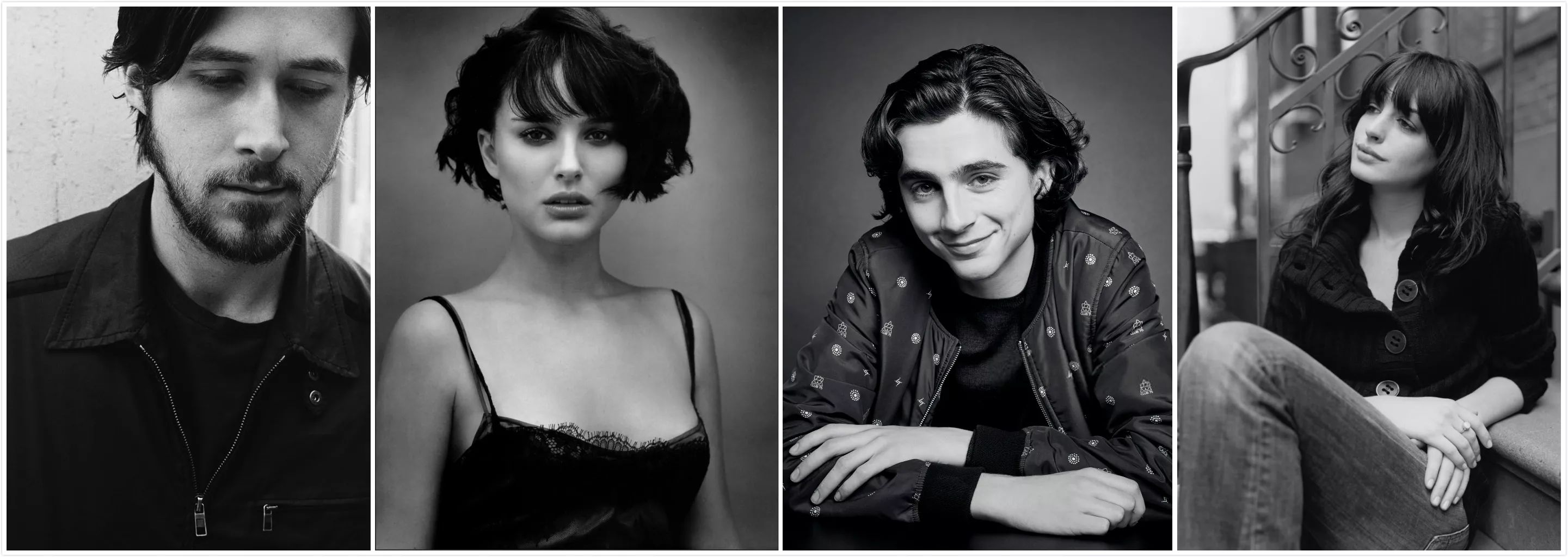 ▲从左至右:瑞恩·高斯林、娜塔莉·波特曼、蒂莫西·柴勒梅德、安妮·海瑟薇