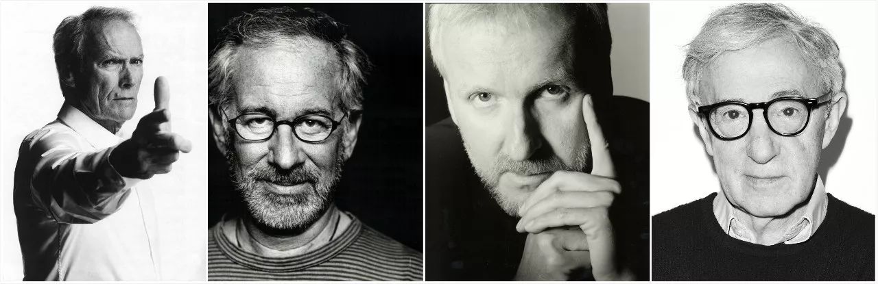 ▲从左至右:克林特·伊斯特伍德、史蒂文·斯皮尔伯格、詹姆斯·卡梅隆、伍迪·艾伦
