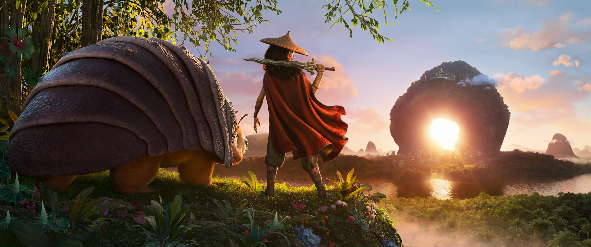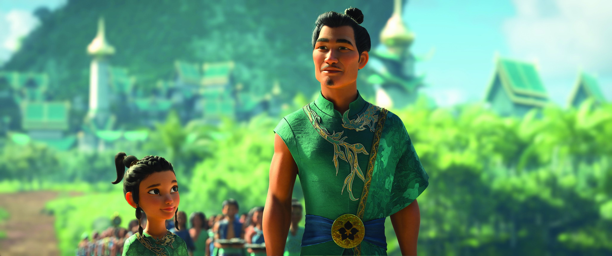 要知道,跨文化传播是不折不扣的双刃剑,强势文化入乡随俗,历来是其拿手好戏。迪士尼早年的《花木兰》动画片和对家的《功夫熊猫》系列就是极佳的例证。东南亚风情十足的世界观设定下,公主拉雅尚武、独立、自信的形象符合当代审美,体现了主流价值观。这样一来,东西方通杀的人物便占据主动,与此同时,拯救父亲的亲情线,与神龙希苏的萌宠感,都是共情大杀器。