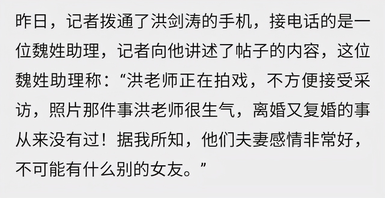 一时之间,关于洪剑涛“出轨”的传闻喧嚣尘上,
