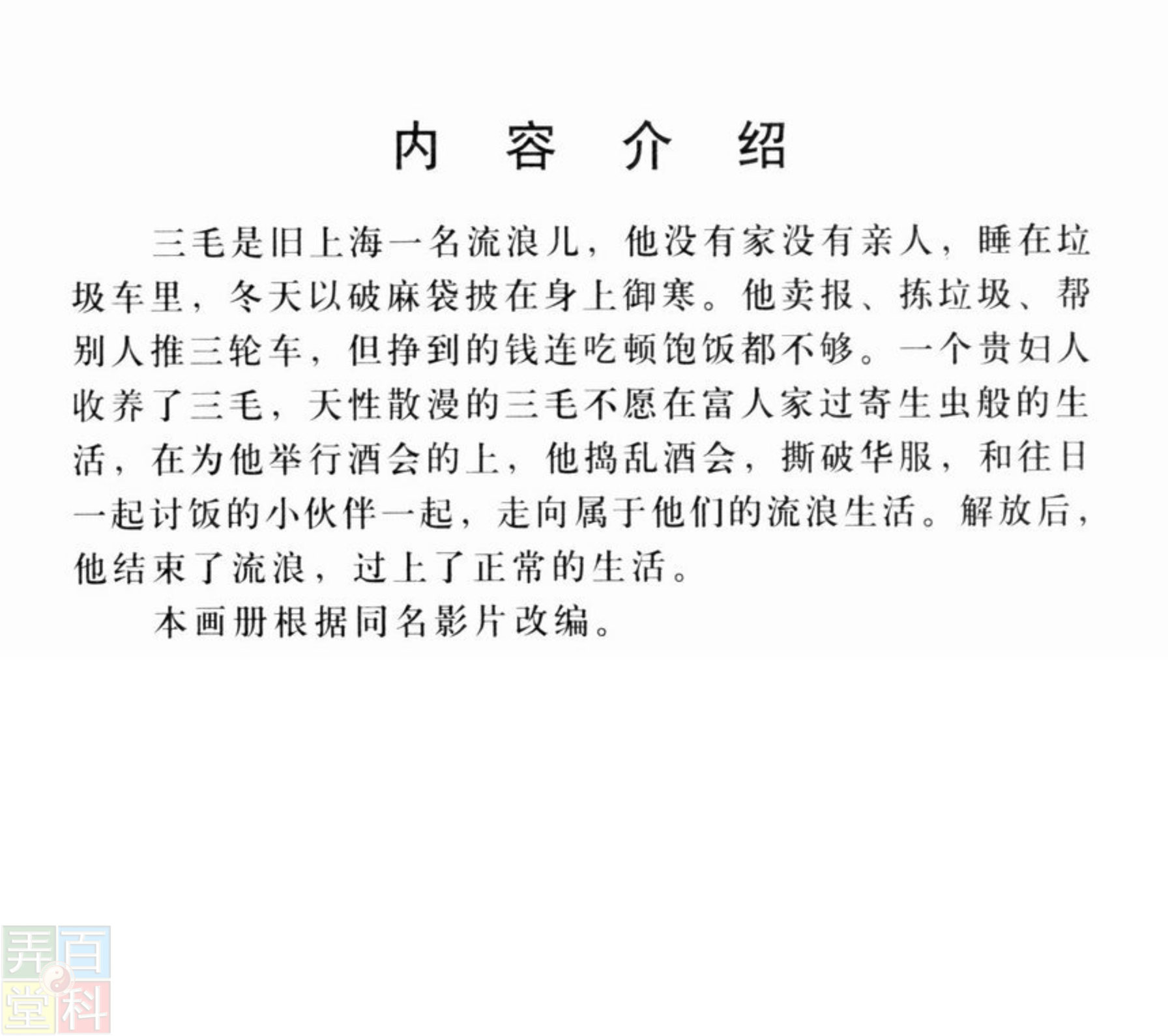 该片根据张乐平创作的同名漫画改编,通过孤儿三毛在旧上海的种种遭遇,展现了广大城市流浪儿童的不幸命运。