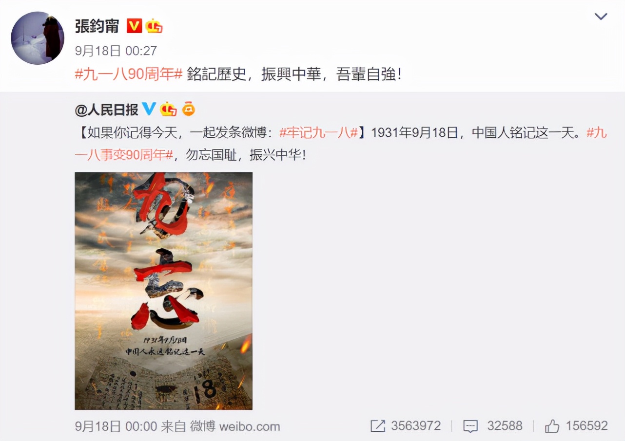 张钧甯第二条动态便是九一八事件九十周年时,张钧甯在零点刚过不久就转发了人民日报的微博。第二天,张钧甯又发布了一条宣传公益的动态,三天后就是这条宣传电影的动态了。从宣传品牌到宣传电影,张钧甯的广告和演艺事业都在顺利进行。