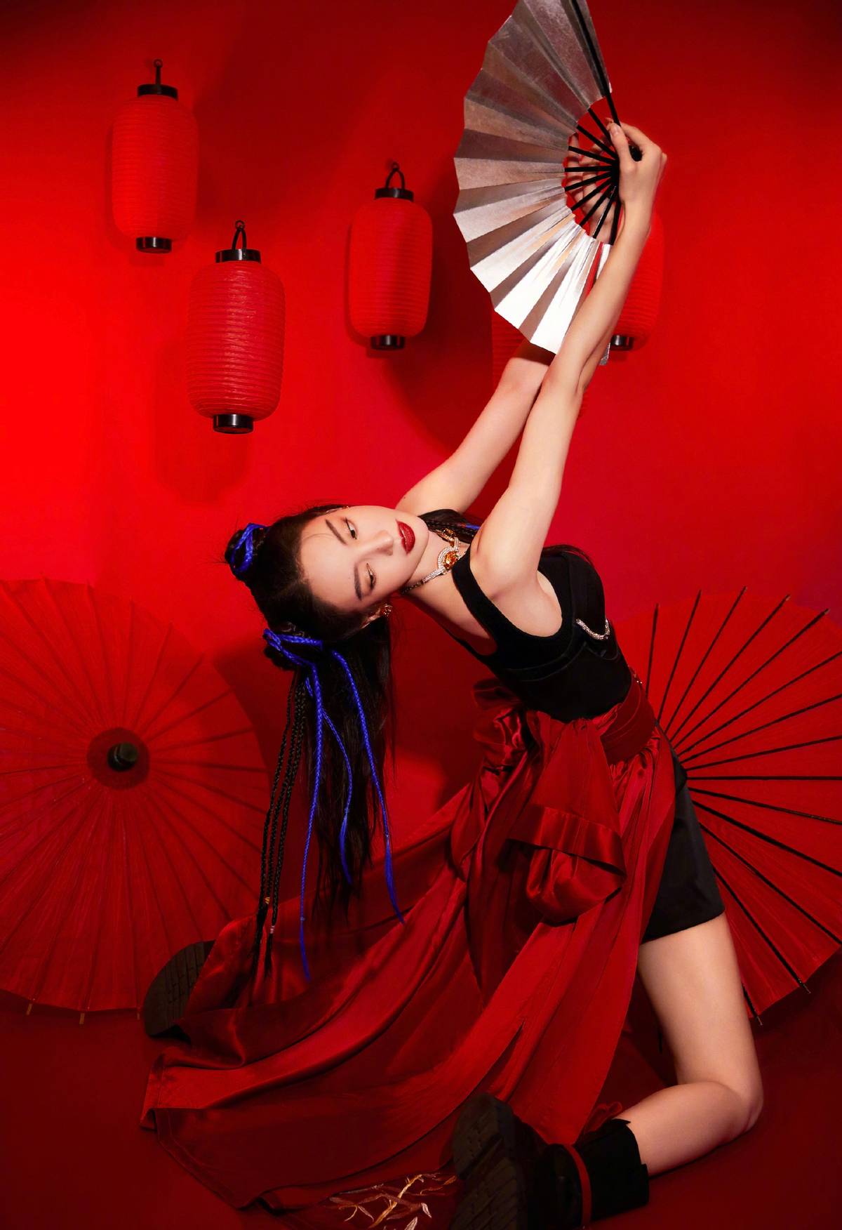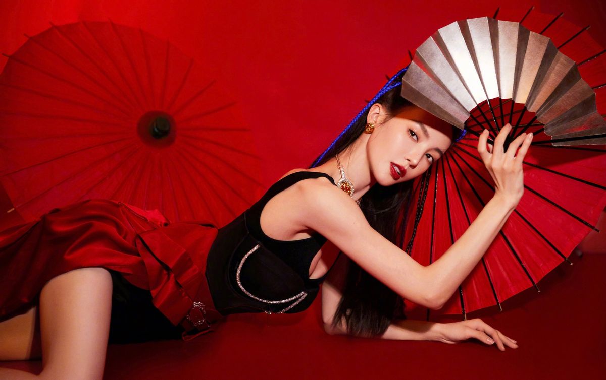 金晨还用了红色的油纸伞和银色的扇子做道具,道具点缀的并不突兀,反而进一步增加了浓浓的新潮国风感,又有年俗又足够新潮。