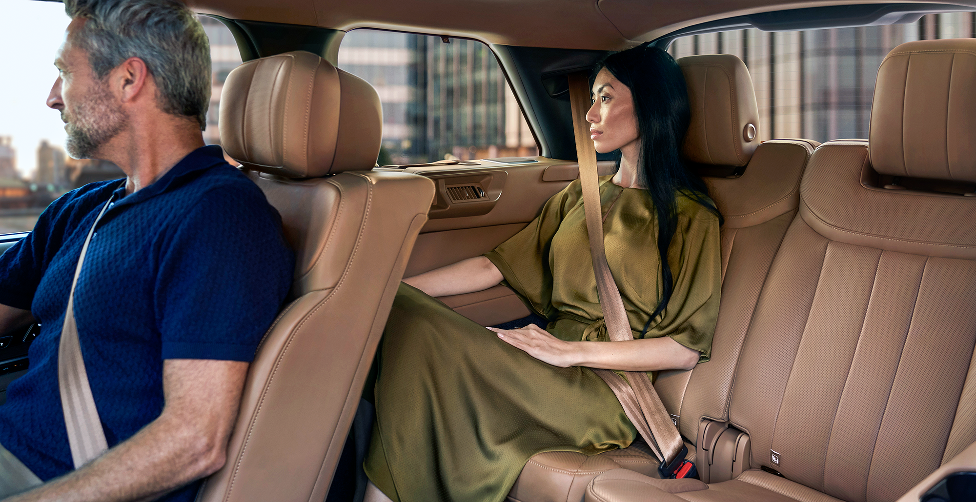 当然啦,大部分购买揽胜的用户,更关注的还是4座和5座车型。其中,标轴版车型仅提供5座可选,尽管如此,全新揽胜的第二排依然是偏向4座的,后排两侧的座椅采用类似独立造型的设计,并且靠背的角度和坐垫前后都是电动调节。中间是一个可以收折的超大中央扶手,其实也在一定程度上说明,即使是5座版揽胜,它的第二排也更倾向于两个人乘坐。