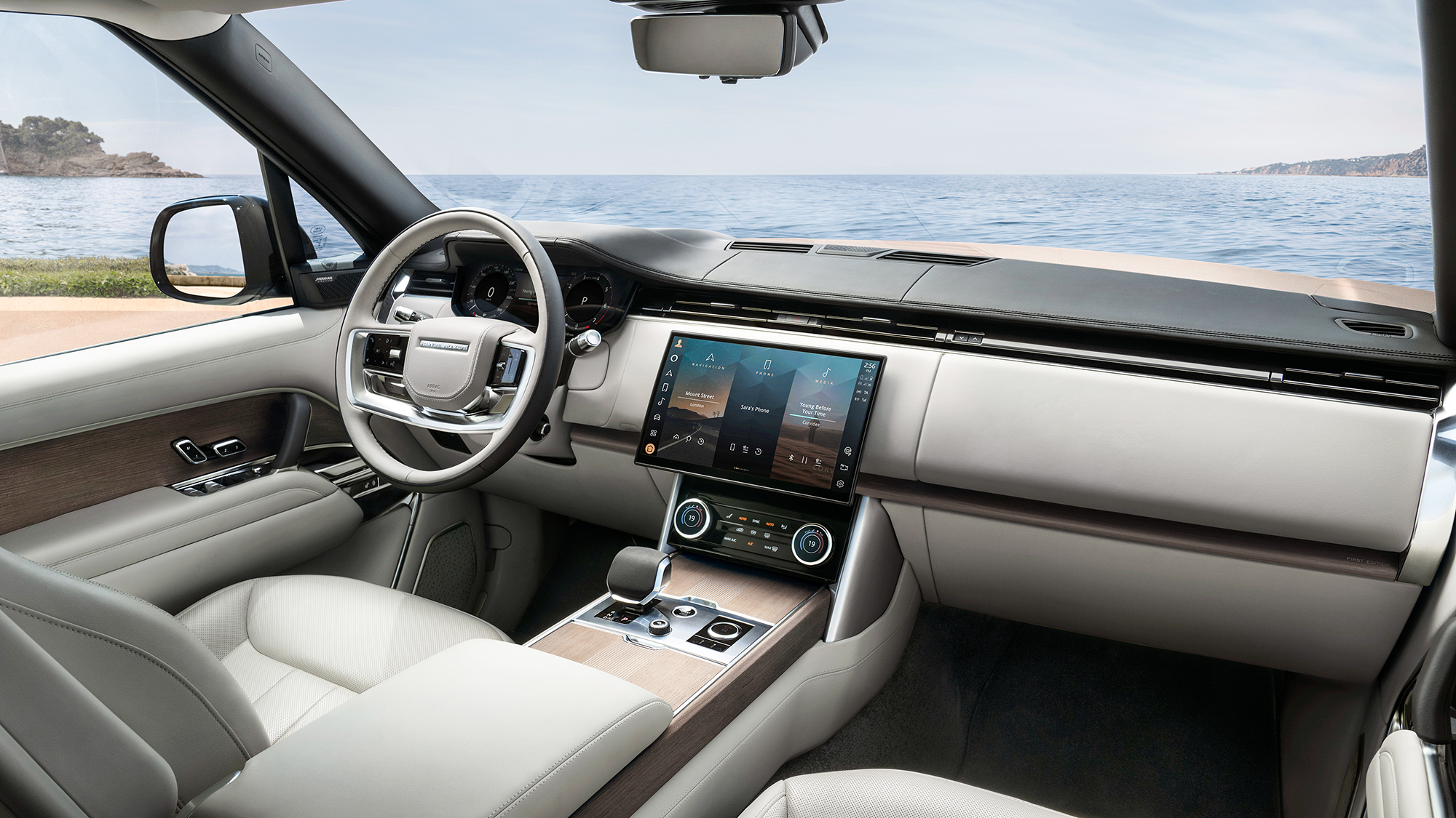 随着豪华车用户逐步年轻化,如今无论是奔驰还是路虎,新推出的旗舰车型都愈发注重时尚的科技感,而不再一味追求老派油腻的豪华氛围。全新一代揽胜的内部设计同样如此,整车内饰一眼看去非常简洁,甚至有一种新能源车的错觉。中控台线条平直规整,通过不同的材质和颜色划分区域,不再使用太复杂的线条造型。