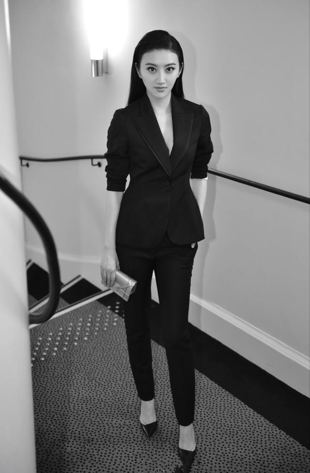 "黑色帅气西装搭配西裤+尖头高跟鞋,景甜帅气撩妹的姿态你被迷倒了?中性风的妹子效仿起来帅气十足,女人味十足的妹子更加撩妹。