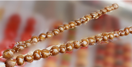 山药在地下部分形成块茎的同时,在地上部叶腋间着生很多的零余子。零余子是腋芽的变态,也即侧枝的变形,称为地上块茎,也叫气生块茎或珠芽,普通称为山药豆。这种东西最常见的吃法是用竹签穿成串,沾上糖稀做成糖葫芦,香甜可口。