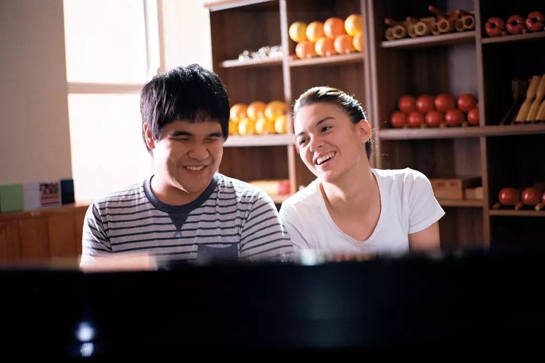 还来自于妈妈的爱,母亲的爱,无微不至地照顾,心疼又放不下,在夜里带领儿子熟悉从宿舍通往教室的路,先是放开儿子的手,然后在他身后默默注视,期待每一个善良的眼神,帮助她爱这个略有残缺的孩子;支持他的音乐,欢喜于他的每一点成就