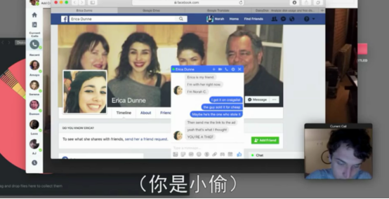 就在男主想要跟朋友视频的时候,却发现了电脑上登陆了一个facebook的账号,而这个账号并不属于男主,男主点进去看了之后,却发现这个账号上面有着与不同女性的聊天记录,似乎看起来像是约…??