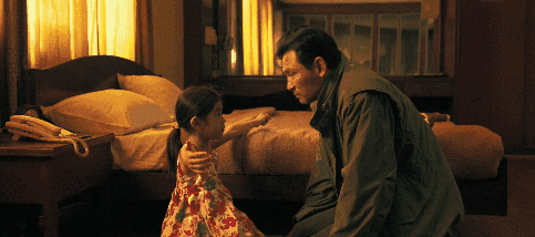 片中的一个镜头让人印象深刻,在女儿受到人贩子惊吓后有了精神压力,变得木然且不再开口说话。