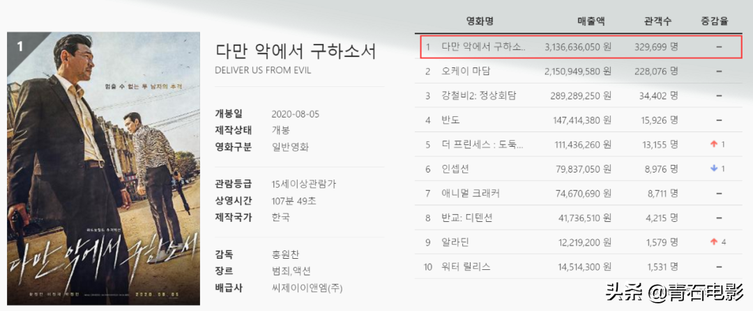 上映后超越《釜山行2》,连续21天稳坐票房冠军,成为韩国暑期档的重磅炸弹。