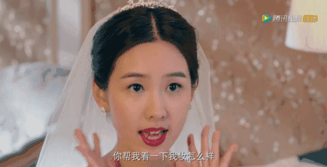 陈都灵婚礼前紧张的问好友妆容的时候是这样的表情。