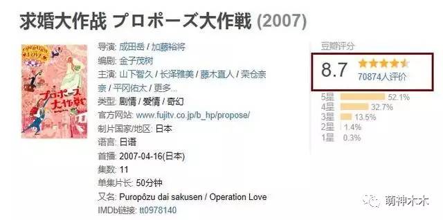 2007年的日本版《求婚大作战》在豆瓣上的评分成绩高达8.7分。