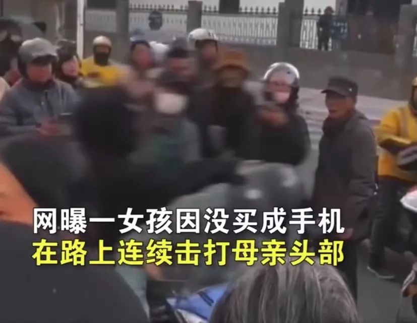 母女情绪激动,妈妈将车停在人群中,想让周围人评评理。女儿催促妈妈快点骑走,妈妈执意不走,女儿情绪崩溃,嚎啕大哭着用拳头捶打妈妈戴头盔的头。