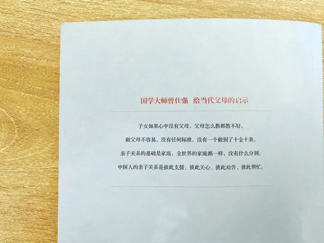 曾仕强教授在书中说:我们不要把子女当成做梦的材料,子女的梦不一定是你的梦,不要勉强他,否则只会徒劳无功。我们只能告诉孩子:做人要规矩,习惯要良好,其他我们真没有权利。我们的亲子关系是重品德、重德行,我们代代相传。