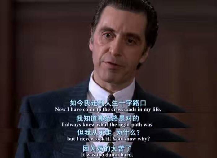 《闻香识女人》如今我走到人生十字路口,我知道哪条路是对的,但我从不走,为什么?因为妈的太苦了!