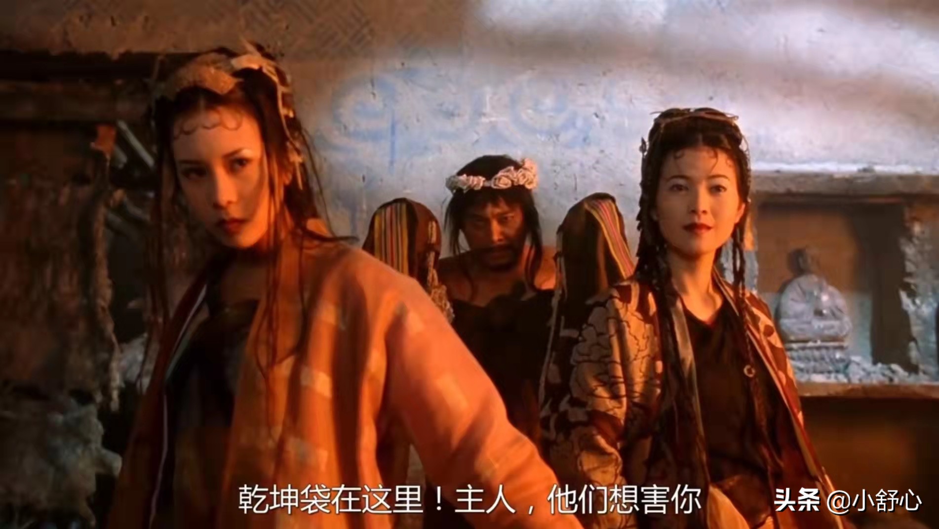 至尊宝跟着紫霞与天机阁主苏摩去找月光宝盒,在这个过程中,紫霞逐渐爱上至尊宝,想要放弃去寻找自己的点灯人齐天大圣。这一段看得着实让人羡慕,依靠、诉衷肠、撒娇,虐单身狗不要不要的。