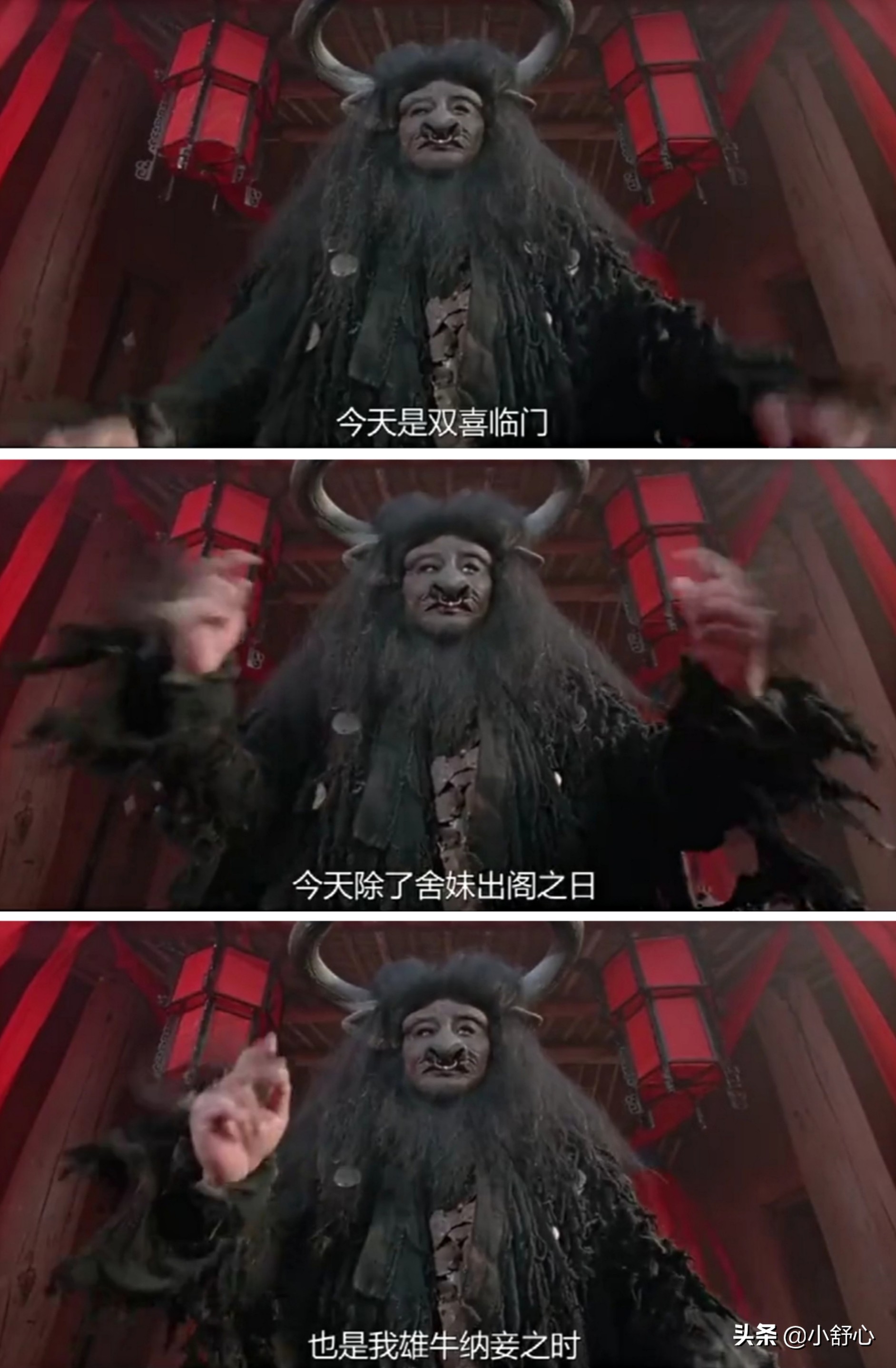 牛魔王宣布妹妹和至尊宝的婚事,同时宣布自己将纳妾,新娘便是他从沙漠中救回的紫霞仙子,聘礼是从唐僧手中得到的月光宝盒。