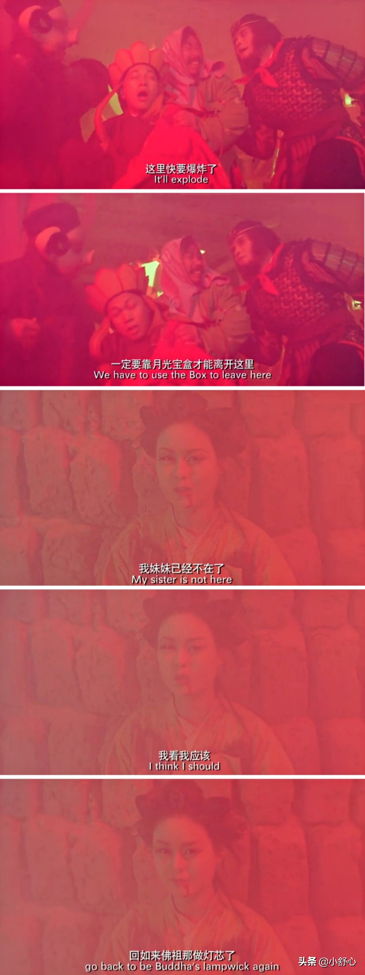 城市离太阳太近快要爆炸,师徒四人借助月光宝盒离开。孙悟空临走之前要青霞一起离开,青霞因紫霞之死而不再对尘世留恋,甘愿回到如来佛祖身边。