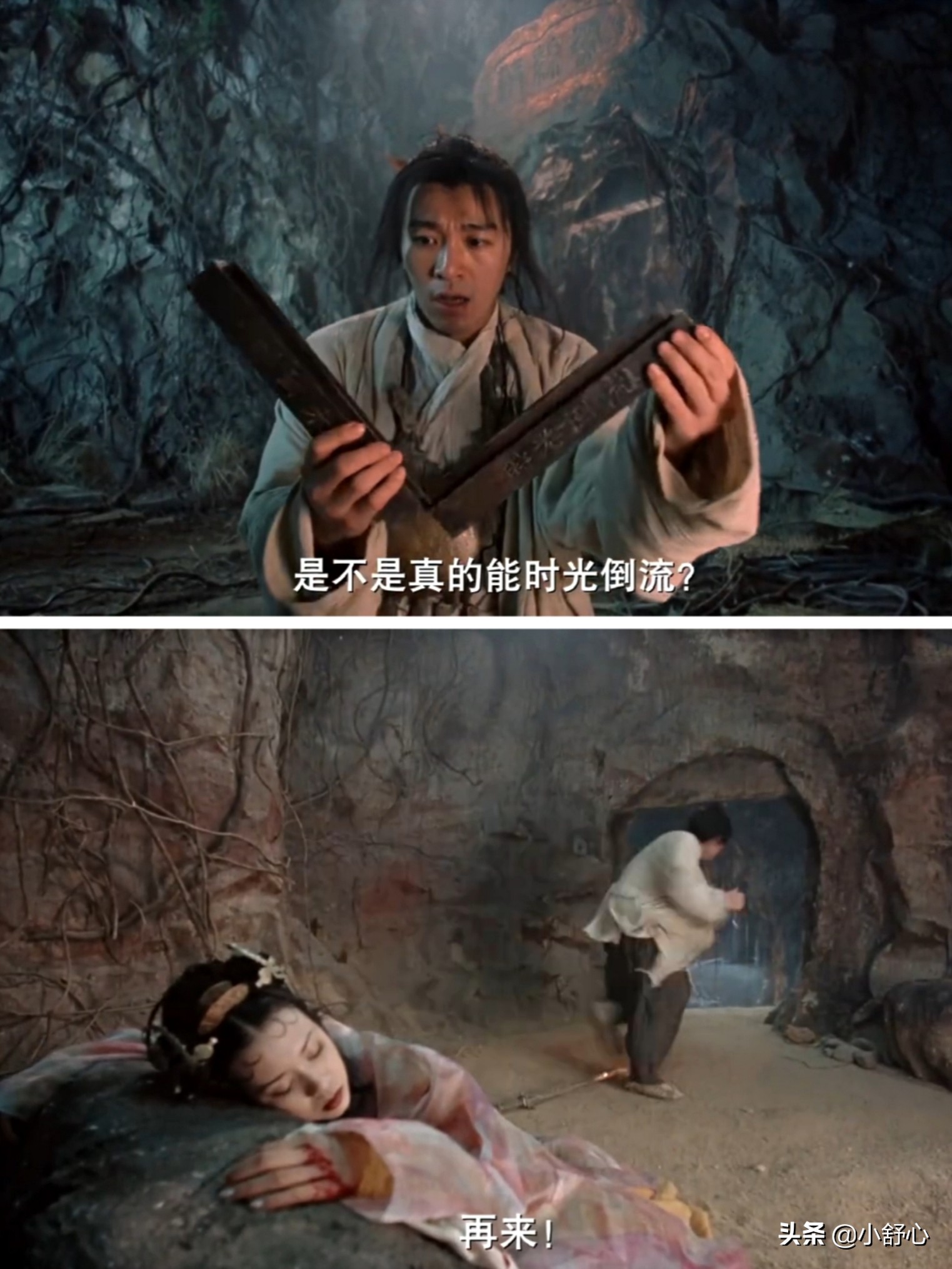 死后的至尊宝,灵魂回到了水帘洞,看到紫霞留在自己心里的一滴泪,意识到自己深爱的其实是紫霞。