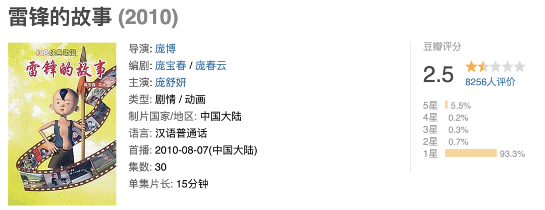 号称花费2100万制作的“大型献礼之作”《雷锋的故事》,豆瓣评分只有2.5,被全网群嘲。