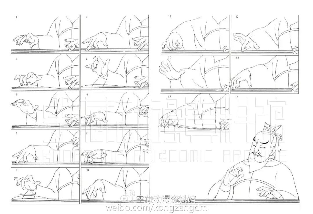 《哪吒闹海》中“李靖抚琴”的一段,马克宣找了上海电影制片厂乐团的琴师,请对方真实地演奏古琴,然后画了速写。