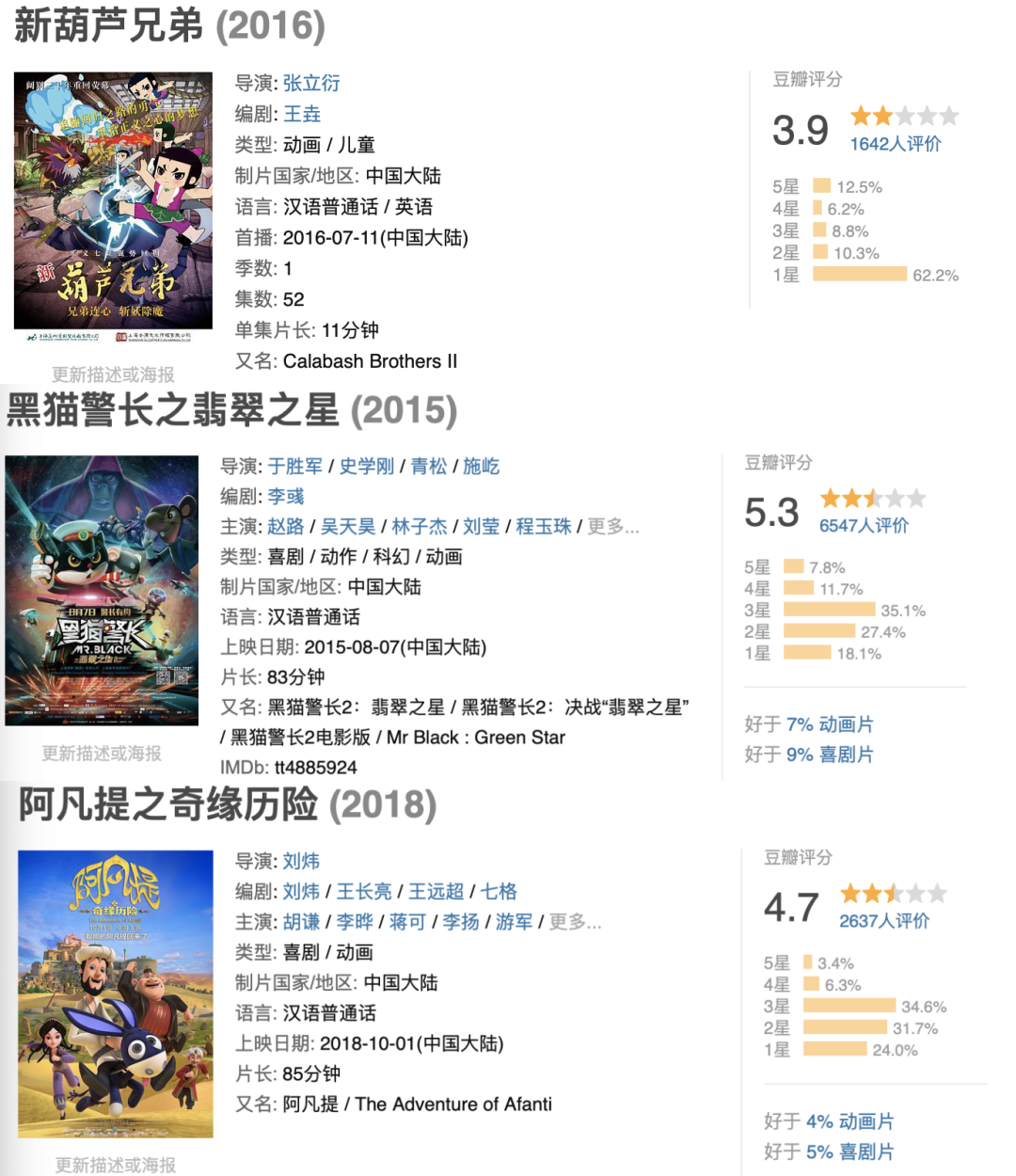 《新葫芦兄弟》《黑猫警长之翡翠之星》《阿凡提之奇缘历险》……挂羊头卖狗肉,跟原版完全没法比。