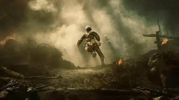 认可把原型人物的故事“去传奇化”(原本这是一个夸张数倍的真事),当它与昭然若揭的老白直煽动情绪相抵直到最后,我们已很难分清唤起的情感是否是强行给予还是本就置于观众的人心角落:不可避免地被圣徒一步步地狱朝圣所感动,不可避免地被战场段落震到万事皆空。这是故事背后的隐藏心理,它并不只停在昭然若揭上,因为从这个角度看,任何的复杂处理都会将老派弄巧成拙。