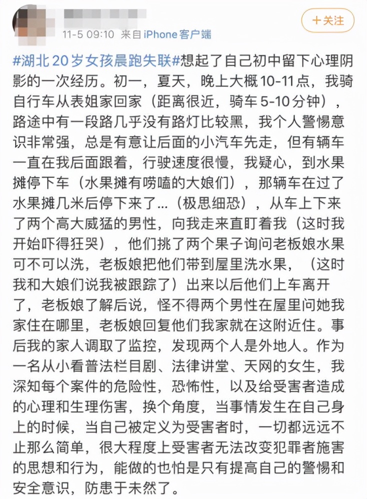 甜甜失踪后,有位网友也回忆起了自己的经历。