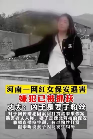 据丈夫透露,网红保安于11月2日深夜遇害,凶手是她的粉丝。