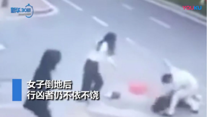 女孩倒地后,男子仍不依不饶连捅数刀。