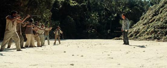 下面有人守着,电话也没信号,就在众人一筹莫展的时候,一口井里居然传来了手机铃声。本逗也不知道为啥塔顶会有一口井,可能这就是古代人的艺术吧。德国小哥自告奋勇下井拿手机拯救大家,可惜这井上的绳子是个三无产品,小哥下到一半绳子就断掉了,他也掉下去生死不知。这下大家有点没辙了,眼镜妹想着下去跟土著理论,让他们来救人。也是心大得很,人家刚杀了你们一个同伴啊大姐。理论的结果显然是失败的,土著压根不知道他们在说什么,眼镜妹气得拽起旁边的藤蔓就朝土著扔了过去,被扔中的一个土著小孩直接就被枪毙了。看到这他们才明白,原来是碰到了这些植物,所以当地人要困住他们。