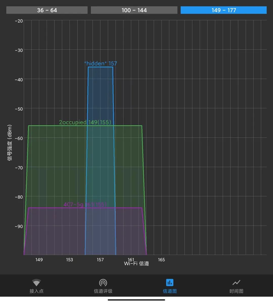 但是切换到 5 ghz 的频段上,看起来就清爽很多了